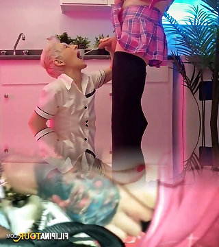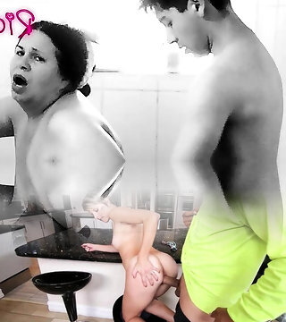 Sapphic kitchen threesome with mature Ariella Ferrera and her girls