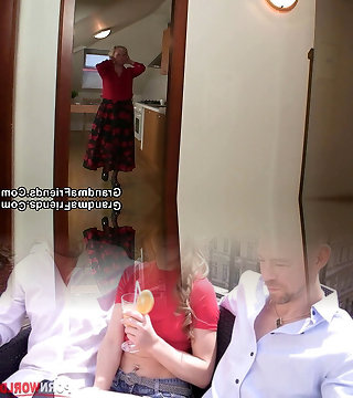 Highly old blonde granny pleases two workers