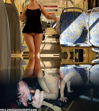 Best Mom Flashing on Bus Boots Stockings. Watch pt2 at goddess