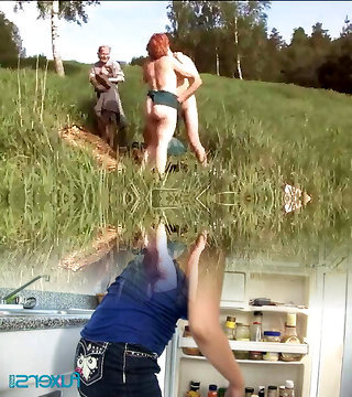 Kinky amateur ginger-haired gonna flash her boobies outdoors without any hesitation