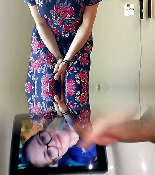 came to my stepmom bathroom, I flash my cock near her and embark jack off, and she pretends that nothing happened but she