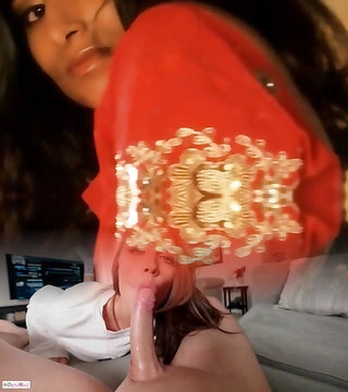 Super-naughty brunette eats her stepbrother's big cock at home - Porn in Spanish