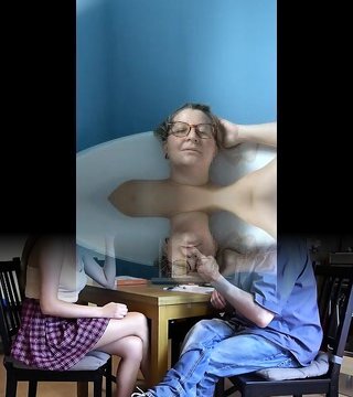 58-yr-old MILF masturbates in lingerie with her stepbrother
