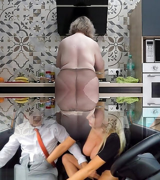 What do you want for breakfast: me or scrambled eggs? Curvaceous wife in nylon pantyhose. Buxomy milf with big ass behind the scenes.