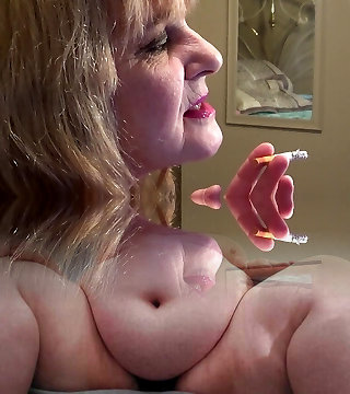 Chubby Mature Blonde Secretly Smoking in the bathroom and ashes on her big tits and pink fuckbox