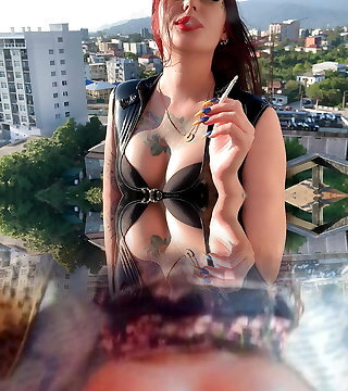 Smoking fetish. Dominatrix Nika tempts you and smokes a cigarette sexually in front of the camera.