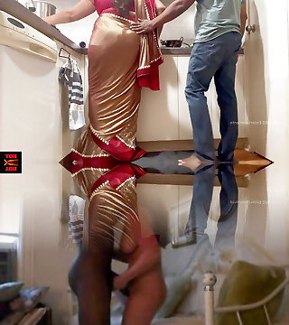 Indian Duo Romance in the Kitchen - Saree Sex - Saree lifted up and Culo Spanked