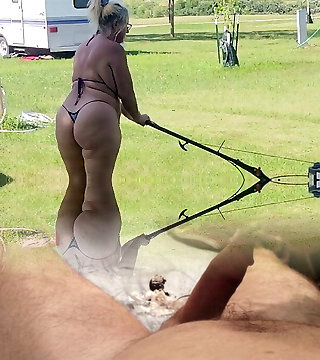 Got back to find wife mowing in a thong bikini, her ass and hips jiggling with every step