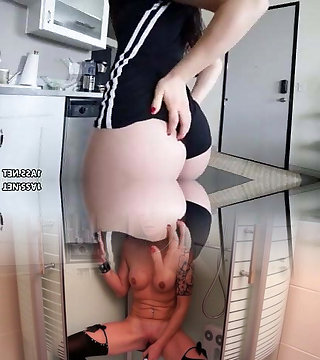 Beautiful Milf with a Huge Ass in Swimsuit plays with Cuck Hubby in Bathroom