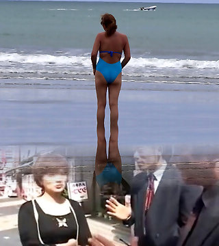 My hot mature wifey shows off her body in slutty swimsuit on beach