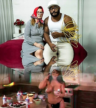 Big grandma with glasses enjoy bbc while hubby recording