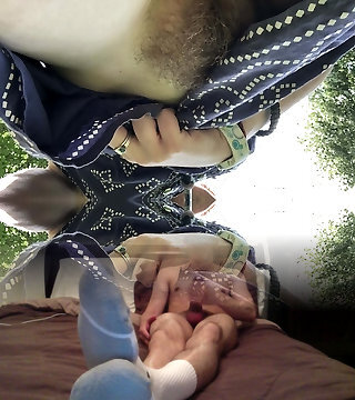 She spread Her Pussy wide to be pleased by Her Sissy in bathing suit and stocking