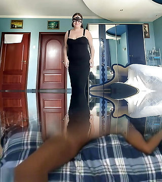Cougar step mom in sexy dress wank cum on hairy cootchie