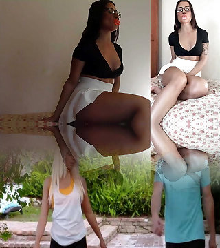 An amazing dark haired German chick gets her feet adorned with cum
