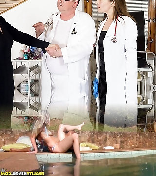 Old woman examined and made to cum by two doctors
