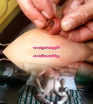 nippleringlover - horny milf inserting huge heavy nipple ring in extremely stretched pierced nipple