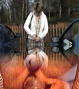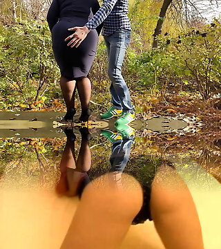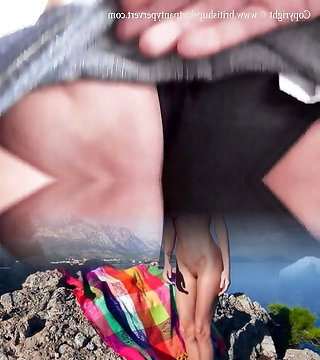 What's under my brief skirt? Ripped pantyhose and powerful pee
