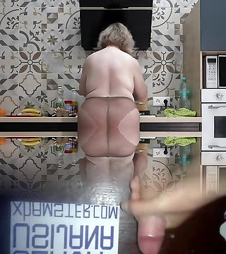 What do you want for breakfast: me or scrambled eggs? Curvaceous wife in nylon pantyhose. Buxomy milf with big ass behind the scenes.