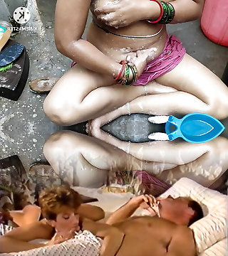 While the Desi stepmother washes bra & panties, stepmom took off the sonnie's trousers and Naked him, Then asks him to fuck her - Jizz