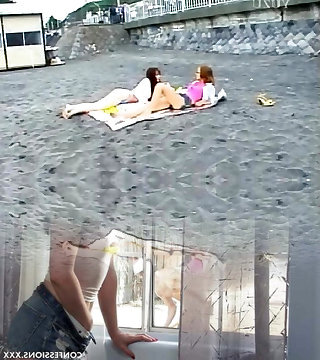 On the beach, I shave my hairy pussy while my mate's stepson records me and faps