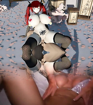 Nasty mommy with red hair and huge tits pleases naughty black guy
