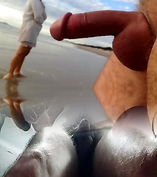 Public erection CFNM beach encounter between gal and male exhibitionist