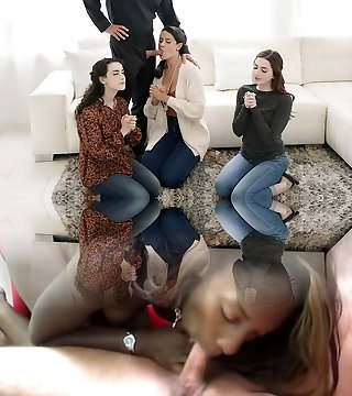 Desperate busty bitches are anxious to suck the lucky guy's fuckpole dry