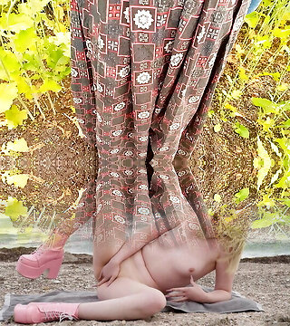 Climax Under a Towel. Cute Babe