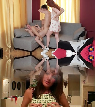 Mature married couple drills pretty coed in uniform Macy Meadows