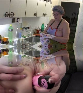 Oma Hotel- Rosa, grandmother with very gray hair love with her kinky toy
