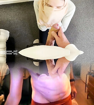 Young Muslim pregnant wife in hijab taught by her husbund on "how to please a man".