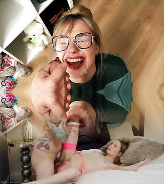 Blowjob with precum swallow & sex. Stepmom red lipstick sucky-sucky.