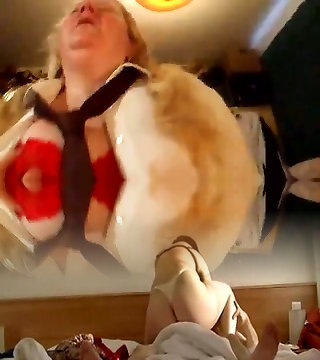 Extremely gigantic and horny mature slut with gross flabby belly was riding cock